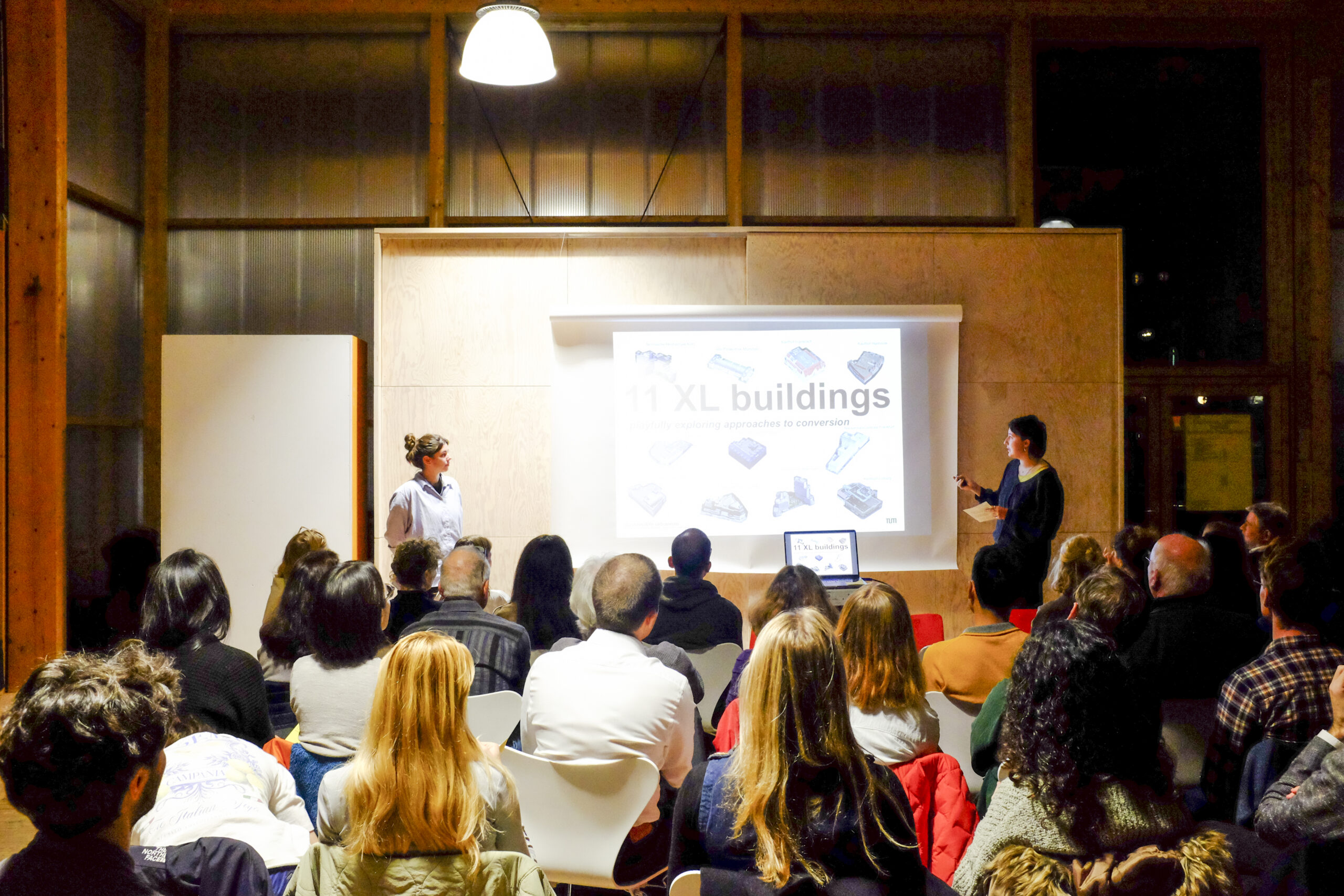 Statt lange zu grübeln, geht es beim Design Sprint XL um das schnelle Skizzieren von Szenarien – ein forschendes Vorgehen, das bei Entscheidungen in frühen Entwurfsphasen von Umbauprojekten helfen kann. Entlang einer visuellen Matrix werden Nutzungsmischungen, strukturelle Eingriffe in das Gebäudevolumen und architektonische Strategien in unterschiedliche Kombinationen und Varianten getestet. In einem abschließenden Plenum werden die entstandenen Arbeiten präsentiert und diskutiert.
